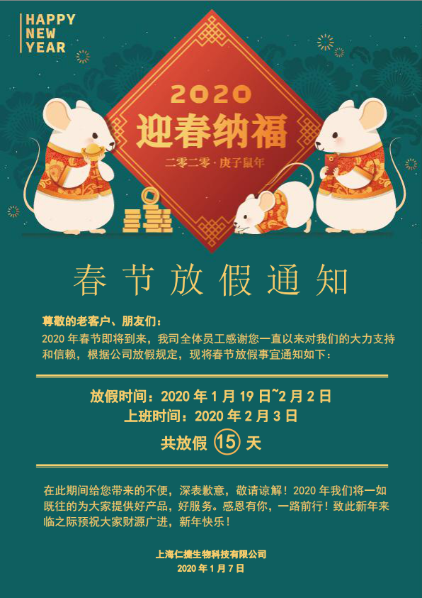 上海仁捷生物科技有限公司 公司地址:上海市楊浦區鐵嶺路32號1519-10室 郵箱:renjiebio@163.com